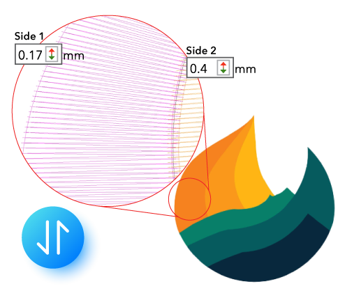 Steuern Sie die Zugkompensation unabhängig auf jeder Seite eines Objekts, um klarere Konturen, eine bessere Kantendefinition und genauere Ergebnisse bei verschiedenen Stoffen zu erzielen.
