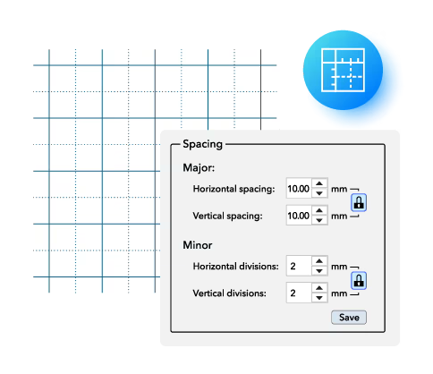 Erstellen Sie mit größerer Genauigkeit, indem Sie sowohl große als auch kleine Rasterunterteilungen verwenden. Das Standardraster von 10 mm bleibt erhalten, während Sie mit dem neuen Mikroraster Abstände, Ausrichtung und Details präzise verfeinern können.