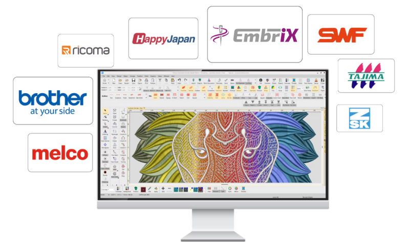 Exportieren Sie Ihre Stickdateien in über 60 Stichdateiformate, um die Kompatibilität mit Ihrer Maschine zu gewährleisten. Zu den unterstützten Formaten gehören Wilcom *.EMB, Tajima *.DST, Barudan *.DSB, SWF *.EBD und viele mehr.