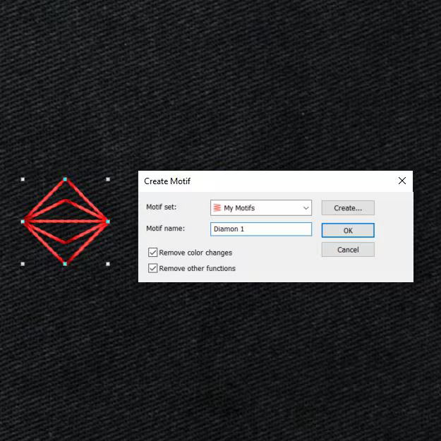 Einfaches Erstellen und Verwalten Jedes Muster, das Sie erstellen oder aus einer Datei öffnen, kann als Motif gespeichert werden. Sie können Motivsätze (z. B. Rauten oder Blütenblätter) erstellen und Ihre Motive in einem dieser Sätze speichern - ein Motiv kann von einem Satz in einen anderen kopiert werden.