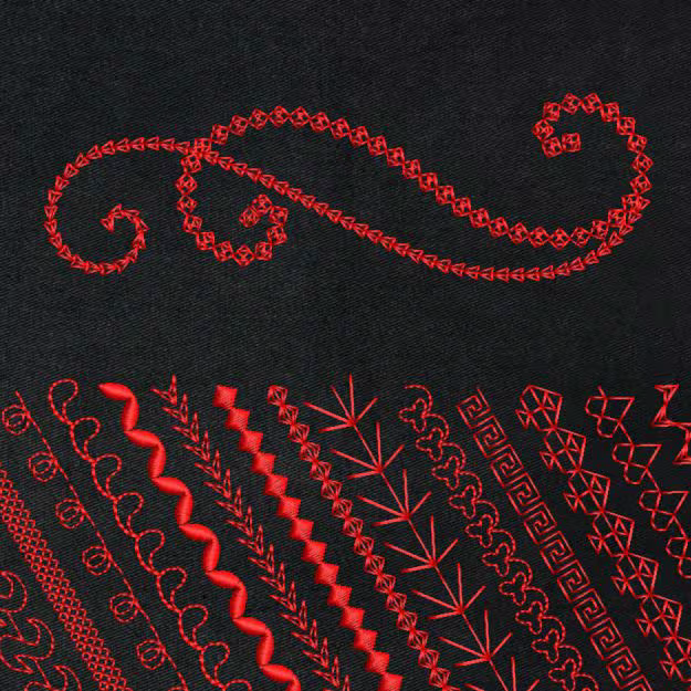 Muster für Läufe und Füllungen erstellen und wiederverwenden Sobald Sie ein Muster für eine Füllung erstellt oder digitalisiert haben, das Ihnen gefällt, z. B. wiederholte Herzen, Rauten usw., können Sie es als Motiv speichern und immer wieder verwenden.